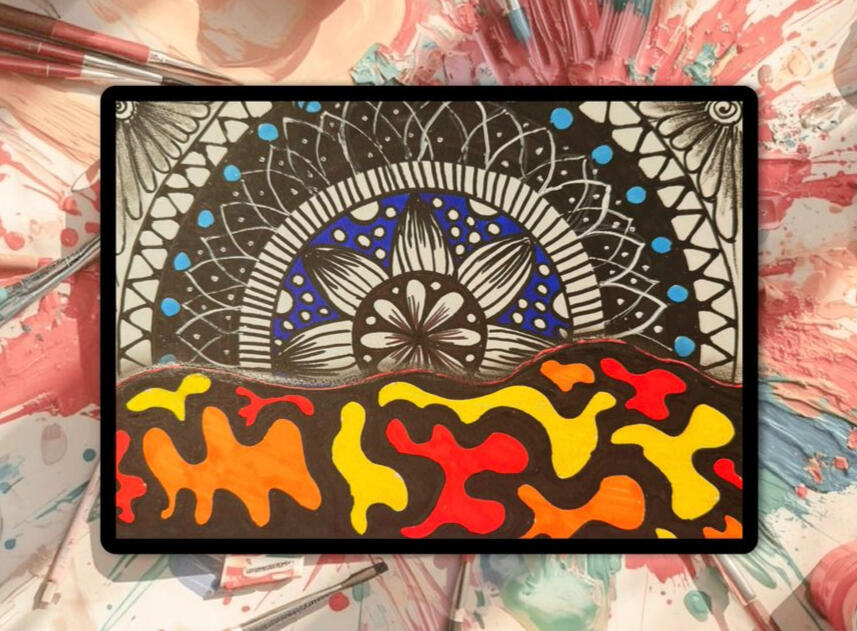 Using Acrylic paints & verity of artistic materials, you will experience*Transform stress into flowing lines